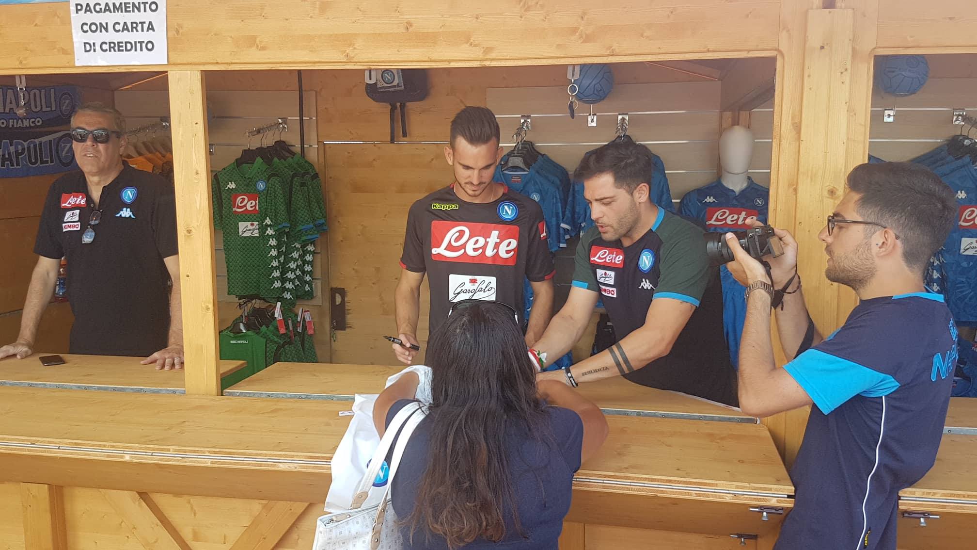 Oggi è il turno di Fabian Ruiz. Allo store per firmare le maglie c'è lo spagnolo. Il nuovo acquisto è molto atteso dai tifosi azzurri. Già alla notizia che sarebbe arrivato lo spagnolo si sono presentati a centinaia in fila per farsi autografare la maglia dal centrocampista azzurro. Appena arrivato, Fabian ha iniziato ad autografare magliette e gadget, tra l'entusiasmo dei tifosi presenti.