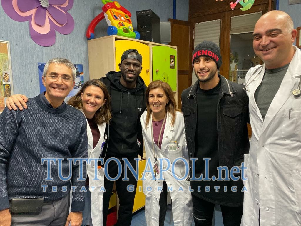 Quando si presenta l'occasione, i giocatori del Napoli sono sempre pronti a tendere la mano verso i bambini che vivono situazioni complicate. Così anche questa volta Faouzi Ghoulam e Kalidou Koulibaly si sono resi protagonisti di una serata all'insegna del sorrisi per i bambini della Clinica pediatrica dell'Università degli Studi della Campania Luigi Vanvitelli: insieme al prof. Carlo Capristo, il prof. Perrotta, la prof. Rossi e la dott.ssa Di Pinto, i giocatori del Napoli hanno trascorso momenti di gioia con i bimbi della struttura, regalando anche le maglie della squadra azzurra, oltre a tanti sorrisi ed emozioni per i piccoli.
