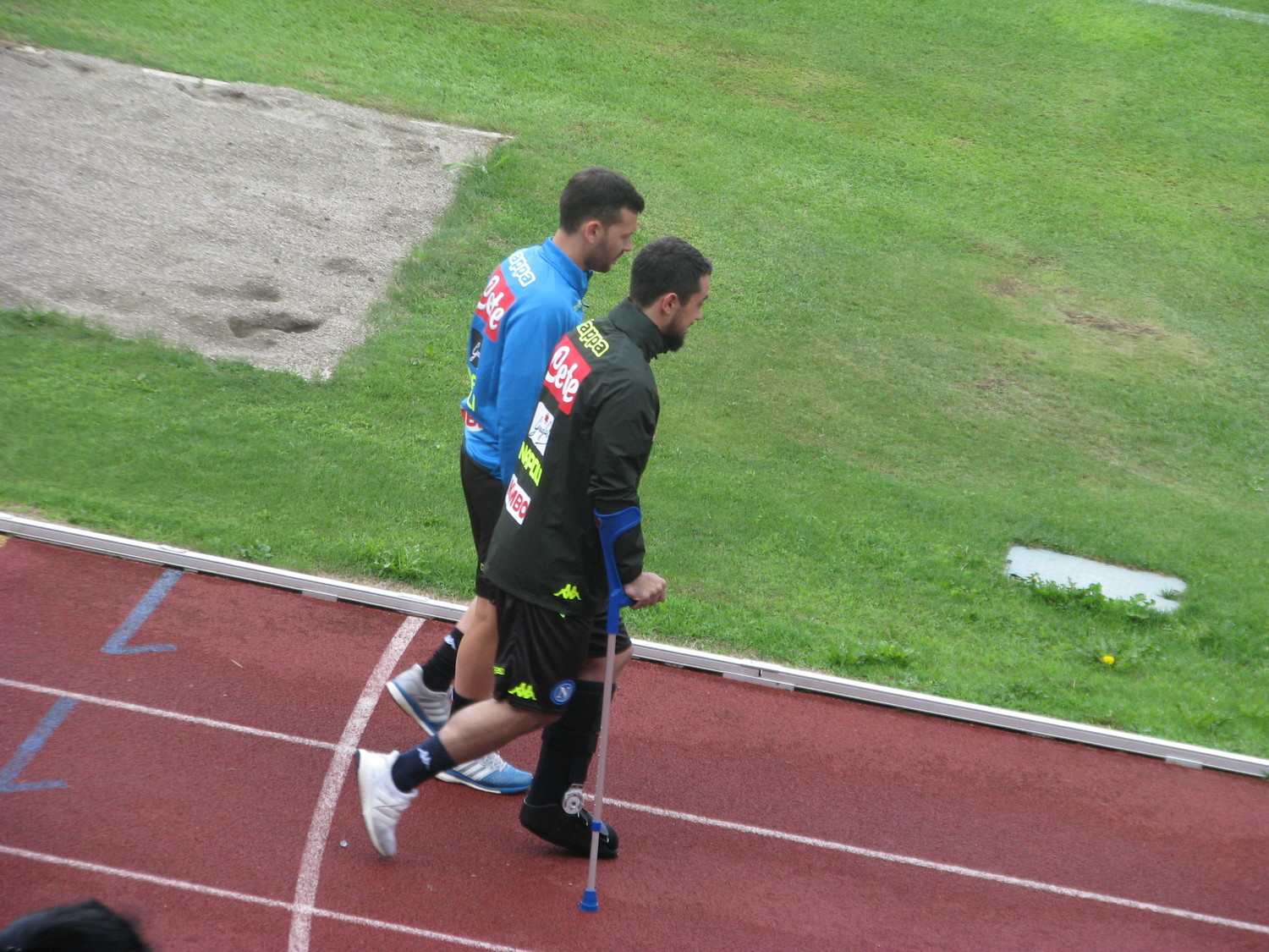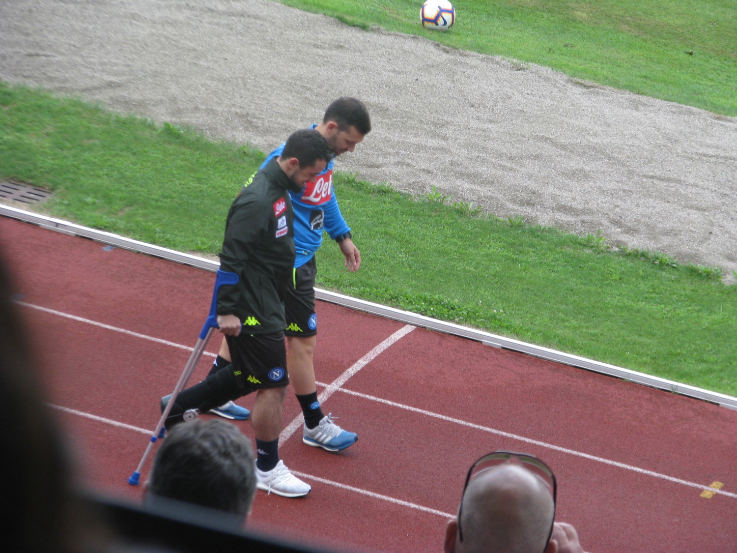Anche questa mattina si sono visti gli infortunati Younes e Meret al campo sportivo di Carciato. Stampelle per il tedesco e gesso al braccio sinistro per il giovane portiere. Ecco la foto: