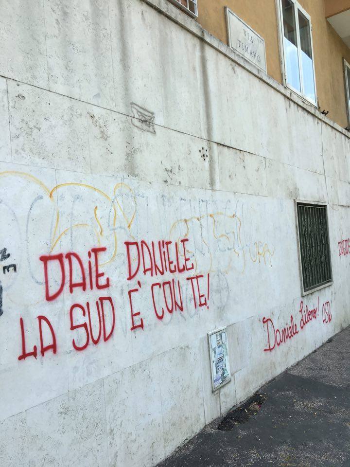 FOTO - Vergogna a Roma, ancora scritte pro-De Santis sui muri: "Daie Daniele, la Sud è con te!"