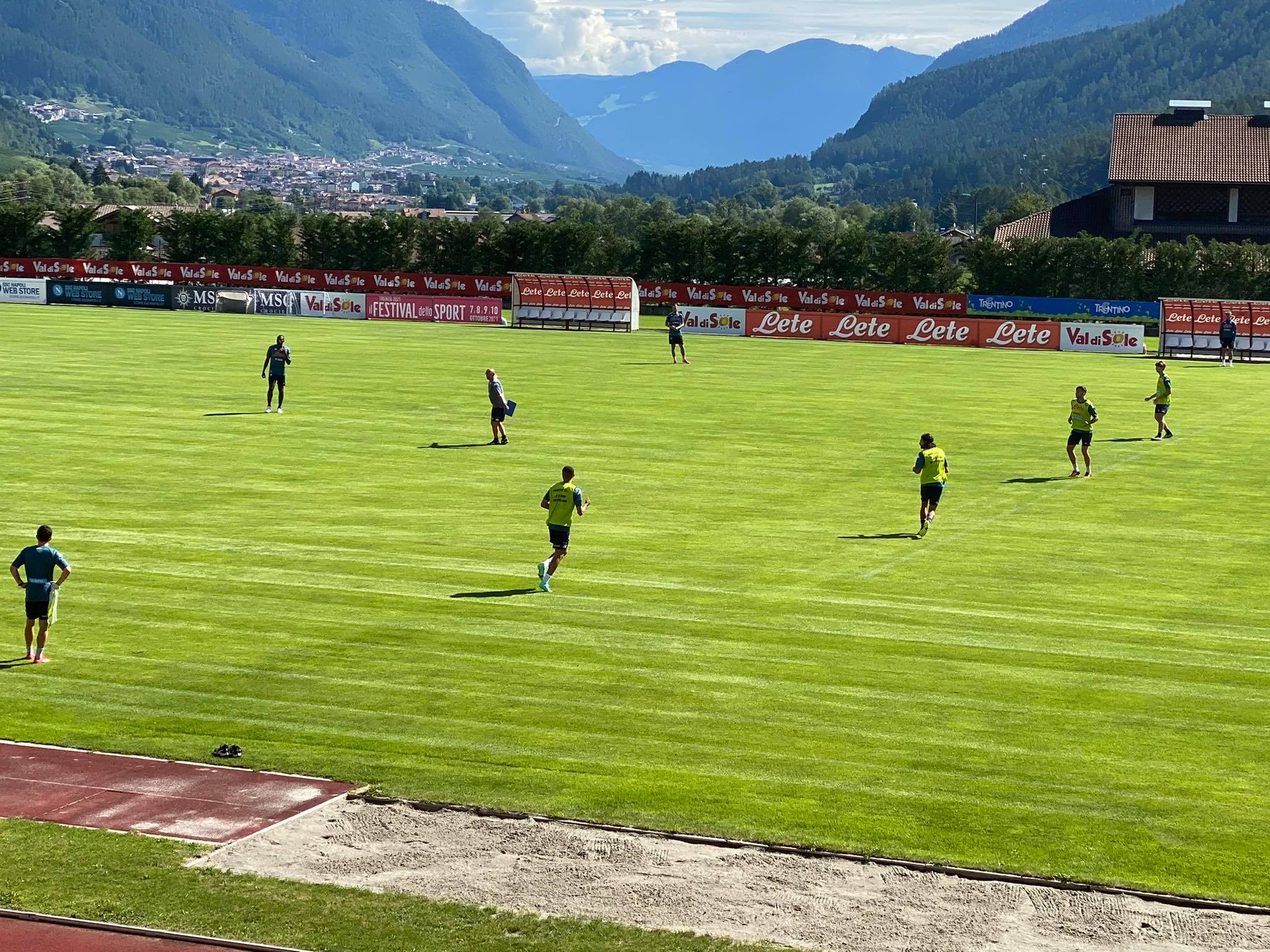 Lavoro sulla fase difensiva in questa seconda seduta d'allenamento a Dimaro. Francesco Calzona, ex vice di Maurizio Sarri tornato al Napoli ora con Luciano Spalletti, sul campo di Carciato guida (proprio come accadeva ai tempi dell'attuale tecnico della Lazio) due linee difensive su esercizi di scivolamento con il terzino che poi si stacca sull'avversario sull'esterno ed i tre difensori che si compattano. Poi, più avanti, nuova variante per allenare la difesa anche sui cambi di gioco.