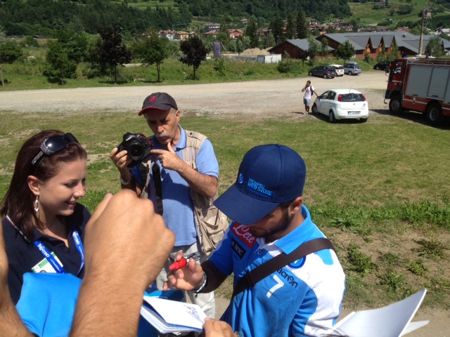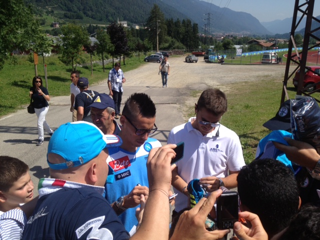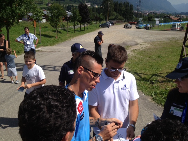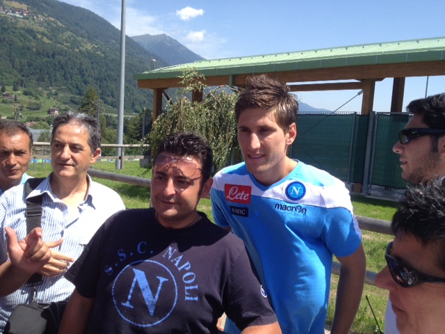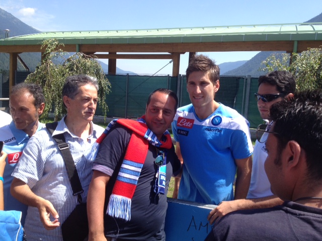 Che affetto, che passione, che amore. Sono i tifosi azzurri che alla fine di ogni allenamento cercano una foto, un autografo, una stretta di mano con i loro beniamini. Oggi ben quattro calciatori sono usciti nella zona antistante lo stadio di Dimaro per riceve l'abbraccio dei tifosi del Napoli. Il più acclamato come di consueto Marek Hamsik ma anche Insigne ha ricevuto attestati di stima straordinari. Foto e autografi anche per Dzemaili e per Federico Fernandez cui i tifosi chiedono di giocare con più grinta per conquistare una maglia da titolare. Tanti foto per Lorenzo Insigne cui un tifoso ha detto "Fatti valere Magnifico" e lui con un sorrisetto sornione ha risposto "certo lo farò".