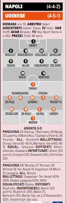 GRAFICO Gazzetta - Napoli-Udinese, probabili formazioni: Callejon può rifiatare, chance per Ounas?