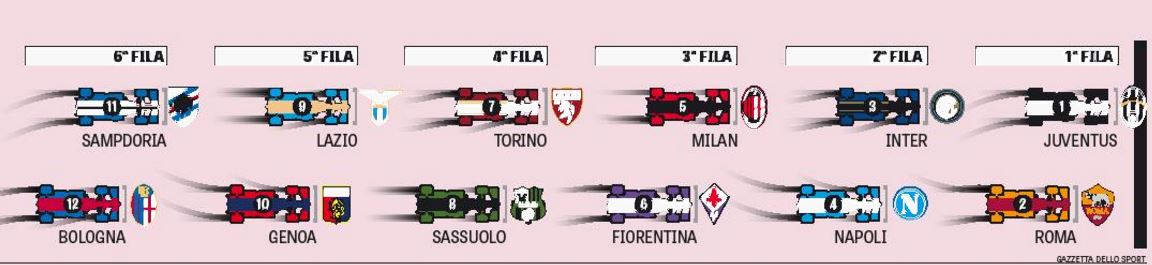 GRAFICO - Gazzetta schiera la griglia di partenza della Serie A: prima la Juve, Napoli dietro a Roma ed Inter