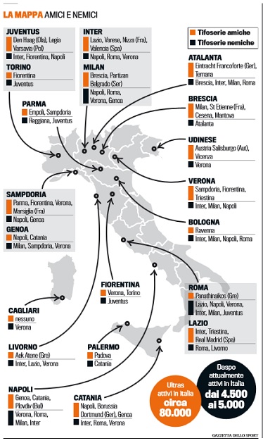 GRAFICO GazzSport - Amici e nemici, la mappa degli ultra' italiani!