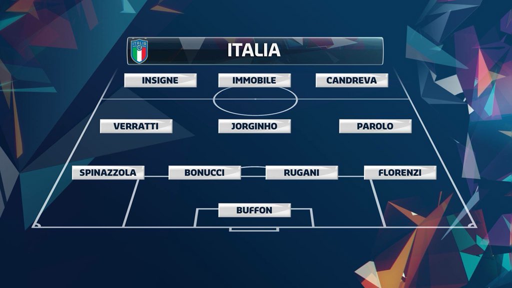 Domani l'esordio dell'Italia di Di Biagio, che affronterà l'Argentina. Modulo sarà il 4-3-3 e nel grafico di Premium Sport, che anticipa le scelte del ct, figurano titolari sia Jorginho in regia che Insigne come esterno sinistro di attacco. Ecco il grafico: