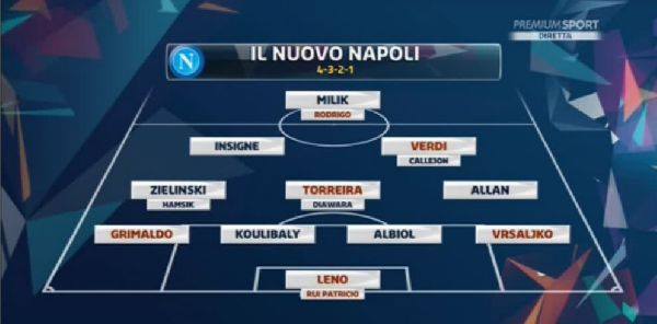 Tanti nomi ruotano attorno al Napoli per quanto riguarda il mercato. Premium Sport, tramite Twitter, ha diramato una possibile formazione azzurra il prossimo anno, con possibili acquisti e cessioni. In difesa non figurano Hysaj e Ghoulam, bensì Vrsaljko e Grimaldo. In mediana Jorginho, che può essere ceduto, sarebbe rimpiazzato da Torreira. In attacco invece ci sarebbe l'innesto di Verdi, che farebbe staffetta con Callejon. In attacco spunta un nome nuovo: Rodrigo del Valencia, che diventerebbe l'alter-ego di Milik.