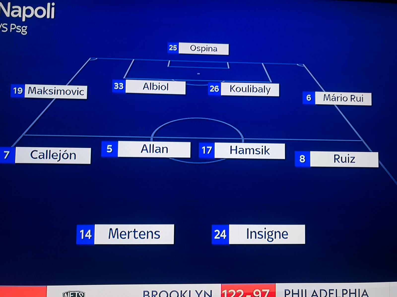 Per una volta senza dubbi di formazione e confermando quanto già fatto vedere. Carlo Ancelotti ha le idee chiare per l'undici che andrà a sfidare il PSG domani sera al San Paolo. Sarà 4-4-2 in fase di non possesso, 3-5-2 in fase di possesso. Il cosiddetto 'tre e mezzo', come all'andata. Di seguito il grafico di formazione di Sky Sport: