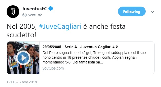 — JuventusFC (@juventusfc) 3 novembre 2018