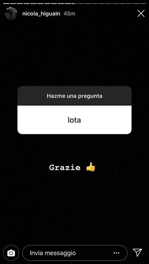 Nicolas Higuain su Instagram: “Che il Milan domani vinca, poi se segna Gonzalo meglio. Lota? Grazie!”