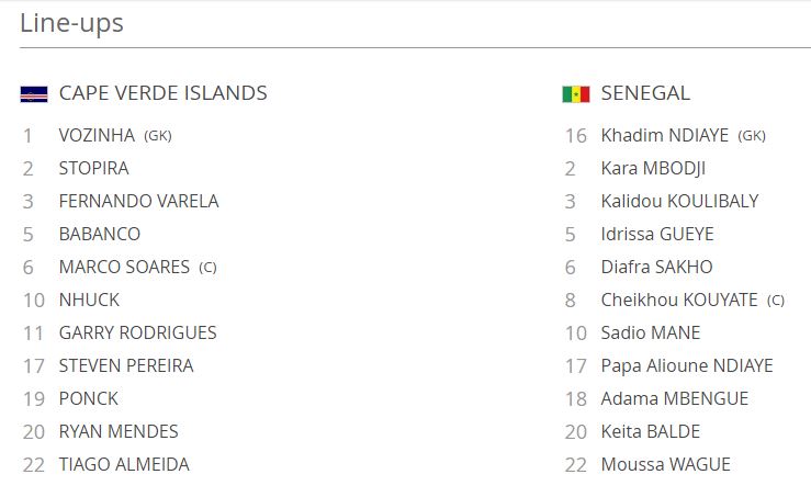 Tempo di qualificazioni ai prossimi Mondiali anche in Africa. Il Senegal di Kalidou Koulibaly dovrà vedersela in trasferta contro il Capo Verde, calcio d'inizio alle 19:30 (ora italiana). Il centrale azzurro partirà dal primo minuto. Ecco nell'immagine seguente le formazioni ufficiali del match: