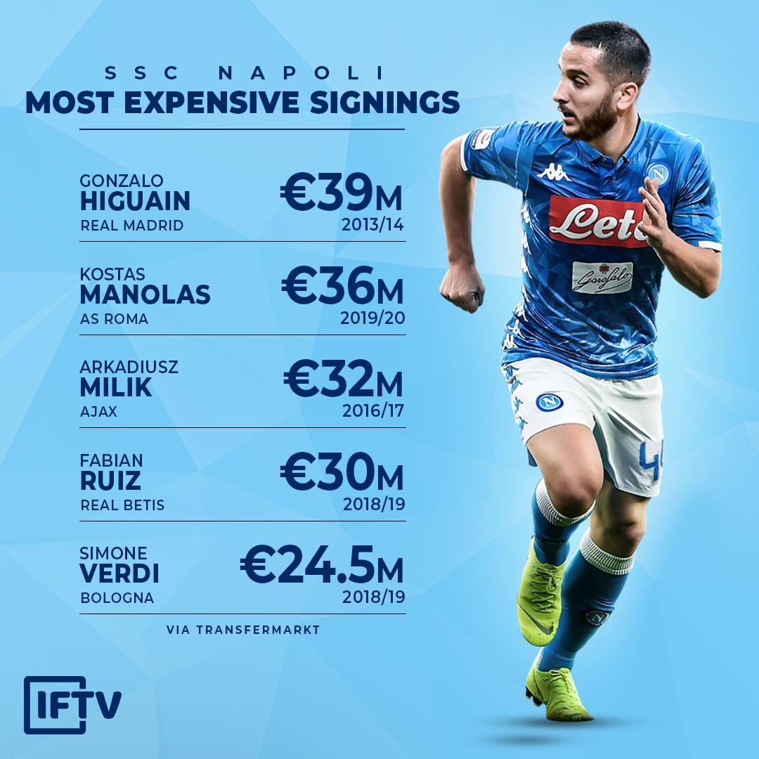 Sborsando i 36 milioni della clausola rescissoria per strappare Kostas Manolas alla Roma, il Napoli ha compiuto il secondo sacrificio economico più importante della sua storia. Al primo posto resta Gonzalo Higuain, che fu preso dal Real Madrid per 39 milioni. Ma l'affare-Manolas ha superato quello per portare Milik, per il quale vennero spesi 32 milioni. Di seguito
