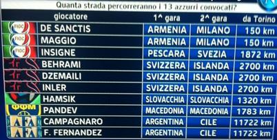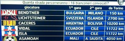La redazione di Sky Sport ha evidenziato i chilometri percorsi dai nazionali di Napoli e Juve in questi giorni. Ecco le tabelle dell’emittente satellitare relativi a bianconeri e partenopei: