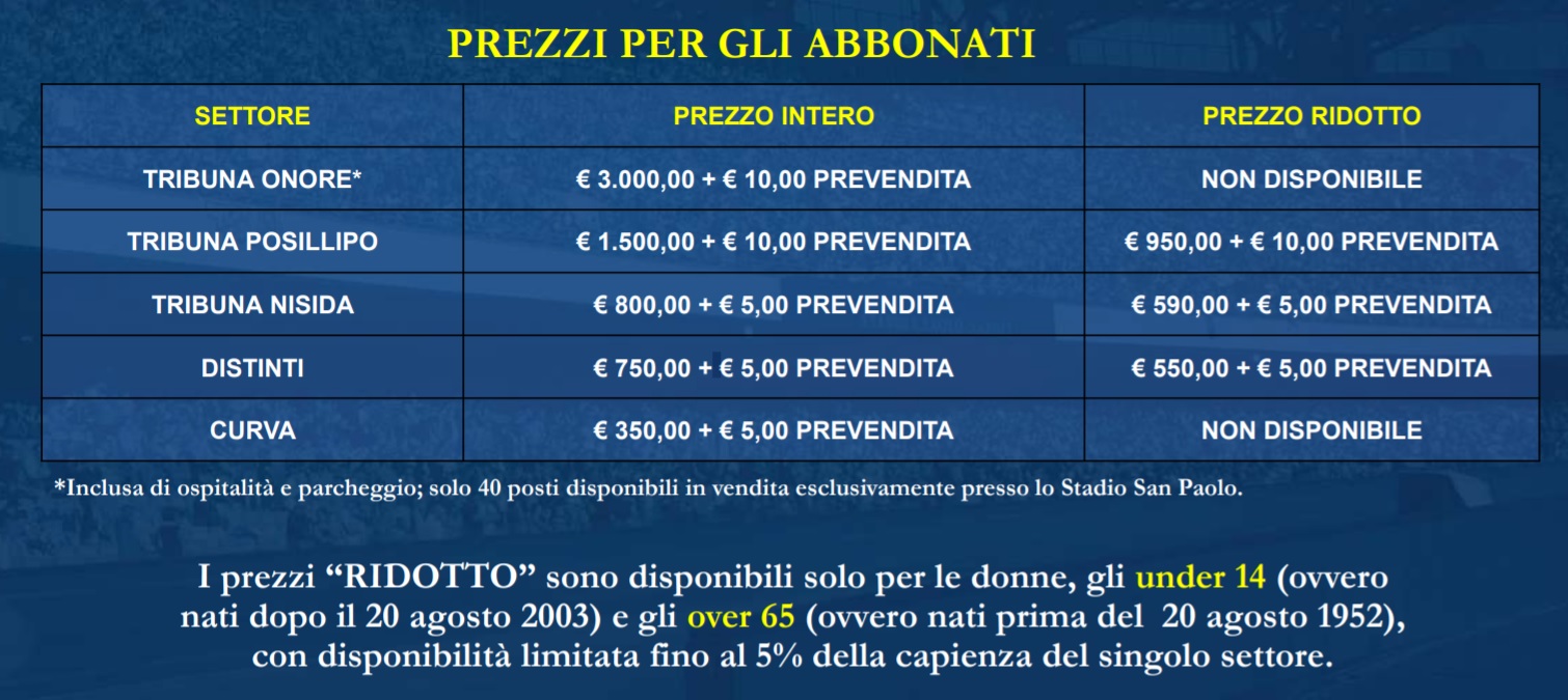 Qui il documento con tutti i dettagli su prezzi, tessera del tifoso e i benefit per gli abbonati
