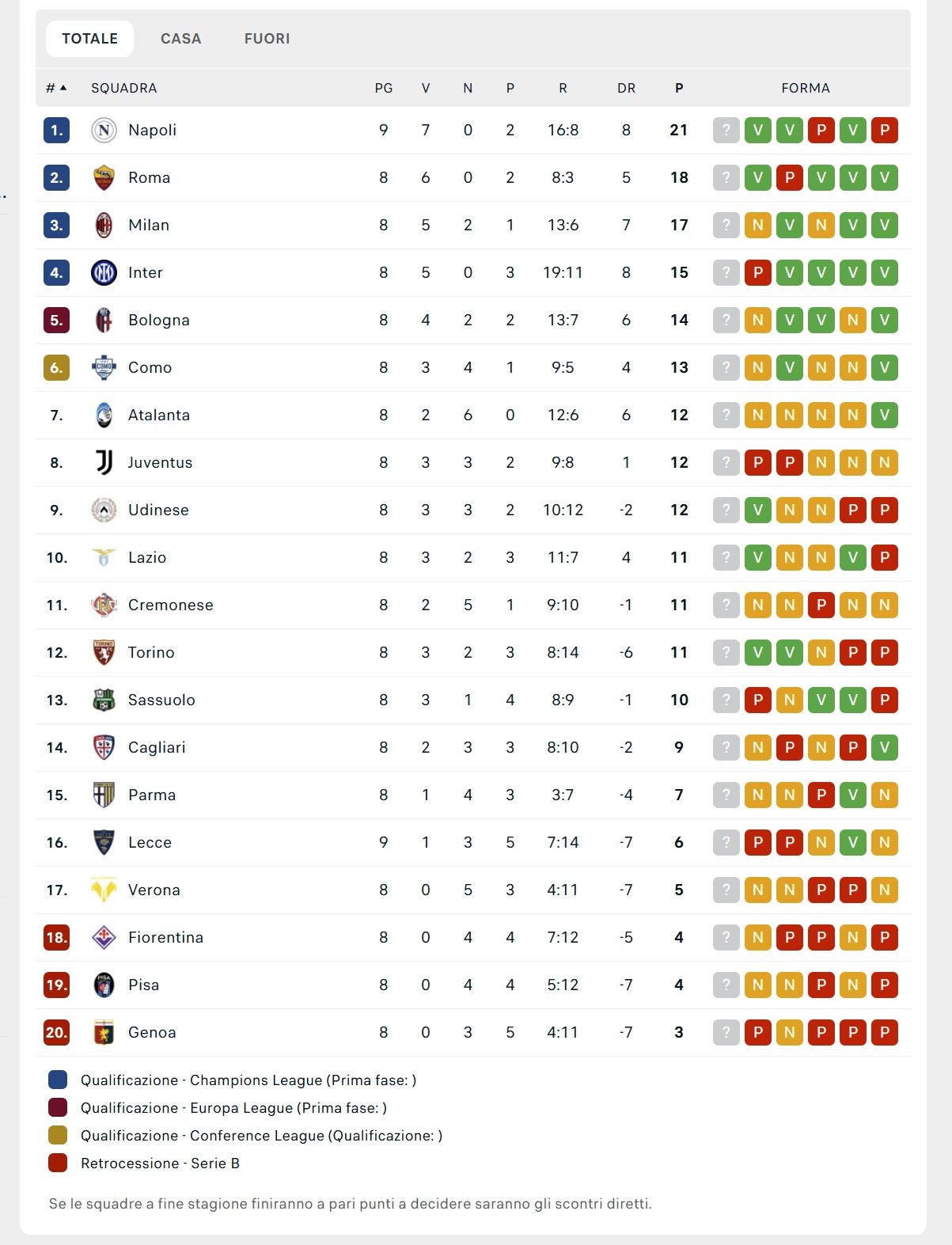 Il Napoli si lascia alle spalle il mal di trasferta e conquista tre punti preziosi al Via del Mare di Lecce, dove basta un gol di Zambo Anguissa per avere ragione della squadra di Di Francesco, che recrimina per un calcio di rigore fallito da Camarda sullo 0-0. Con questo successo gli azzurri ritrovano la vetta solitaria della classifica, aspettando la Roma, con tre punti di vantaggio sui giallorossi. Di seguito la classifica di Serie A aggiornata.