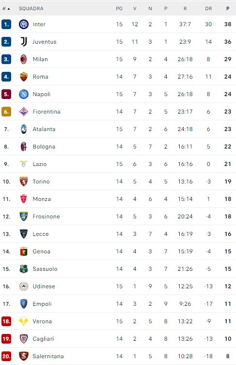 CLASSIFICA - Controsorpasso alla Juventus: l'Inter torna in vetta