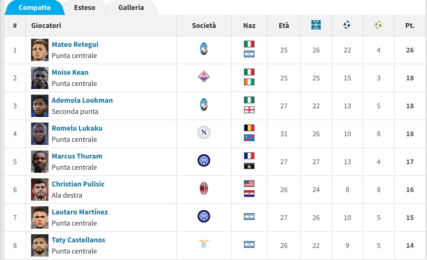 10 gol, tutti pesanti (il Napoli ha sempre vinto quando Romelu Lukaku ha segnato in questo campionato) e sommando gol e assist ha contribuito finora a 18 reti del Napoli (su 45 totali), al pari di Lookman e Kean e dietro solo Retegui che però fanno parte di squadre che finora hanno avuto una produzione offensiva notevole. Di seguito la graduatoria.