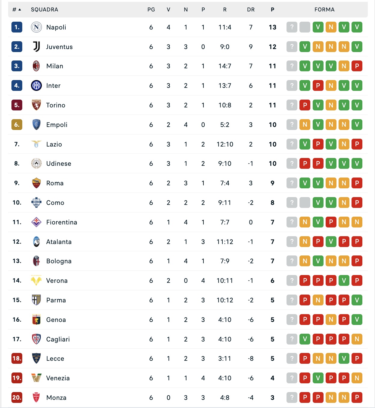 Serie A, la classifica aggiornata dopo Napoli-Como: