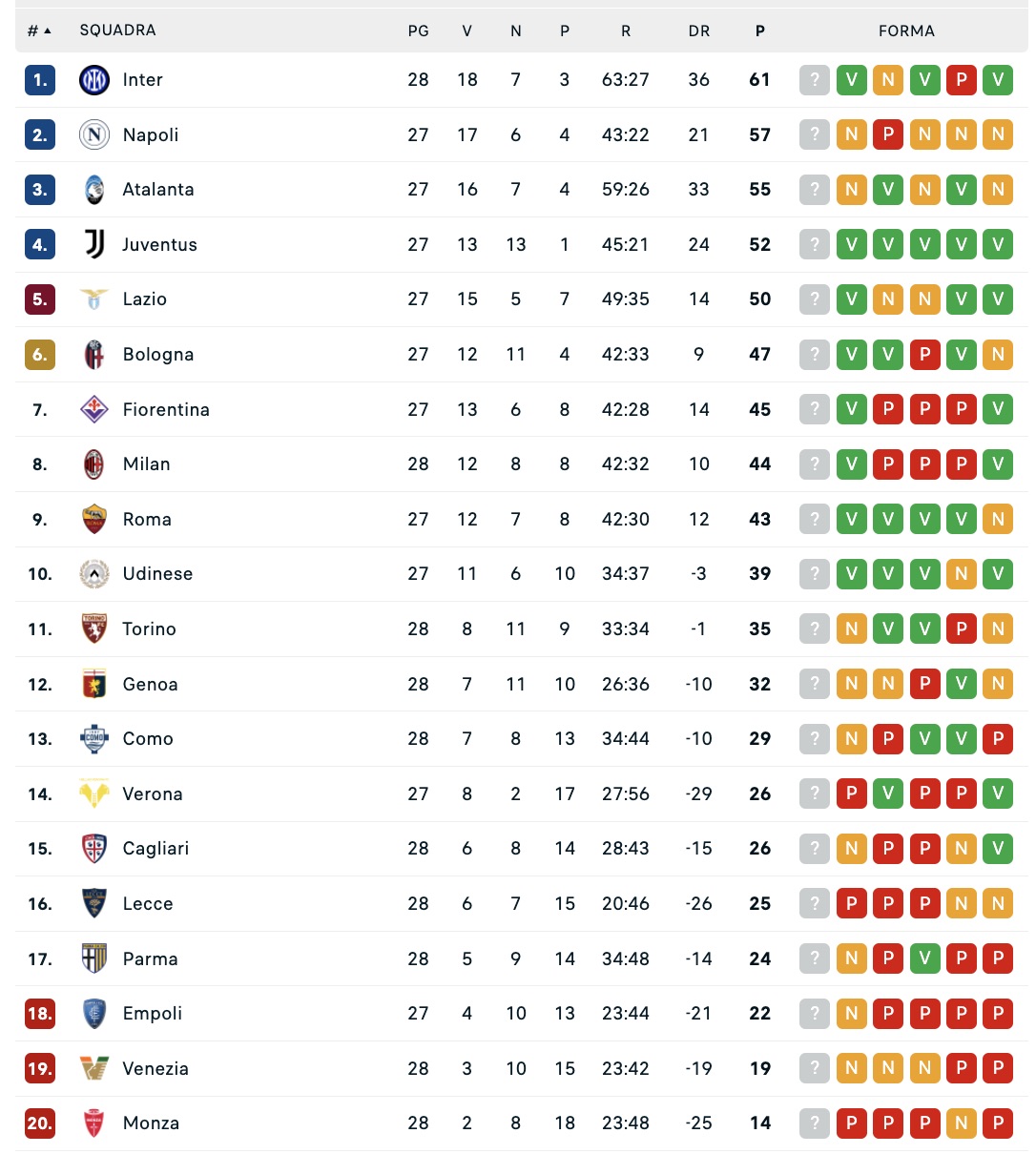 1. Inter 61 punti (28)
