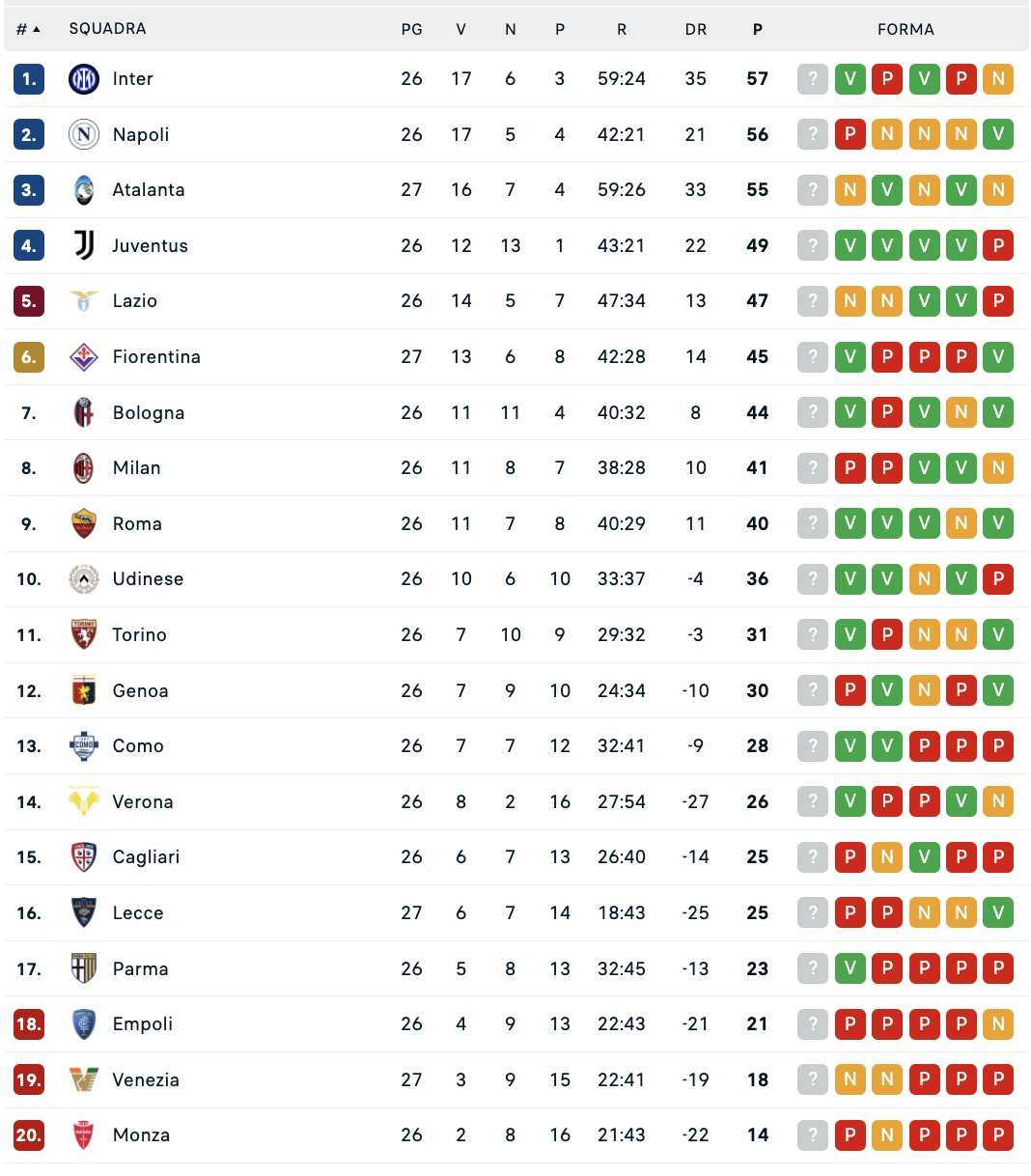 CLASSIFICA - L'Inter resta a +1, ma il Napoli dimostra di potersela giocare