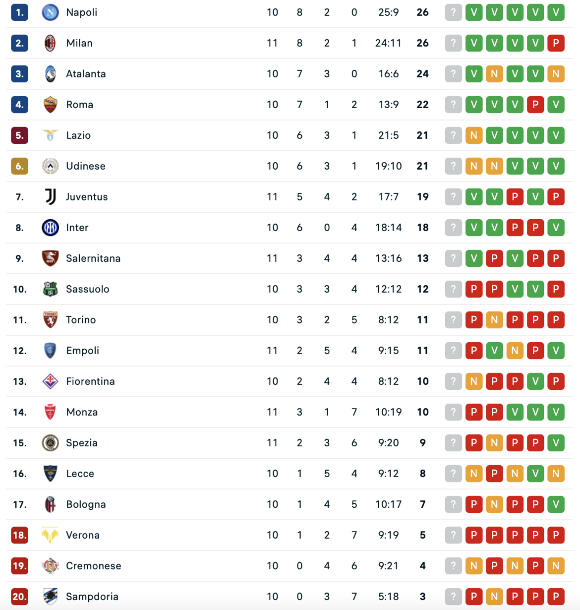 CLASSIFICA - Milan momentaneamente in testa: agganciato il Napoli al primo posto