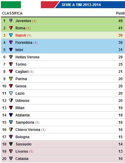Missione compiuta per gli azzurri: grazie alla vittoria sulla Sampdoria il Napoli raggiunge quota 39 punti, staccando la Fiorentina a 36 e portandosi a solo due lunghezze dalla Roma seconda in classifica. Juventus sempre lontana, bianconeri a +10.
