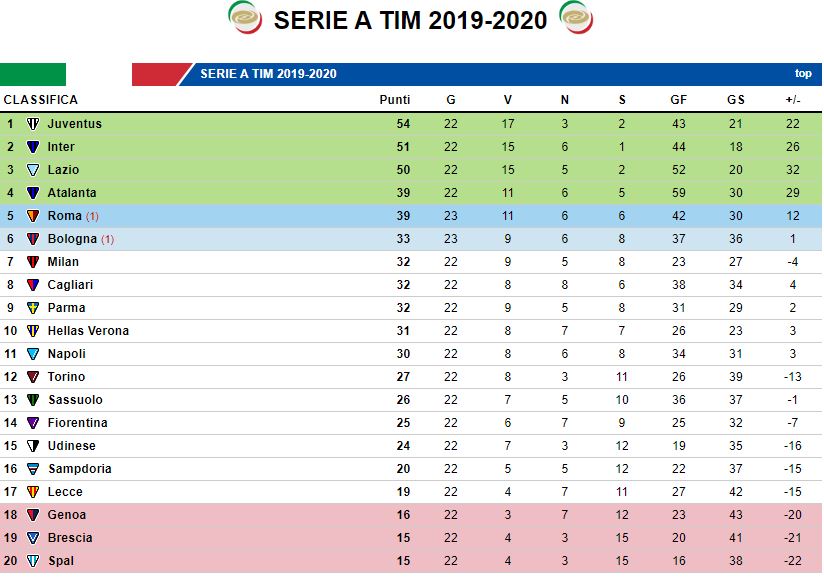 Una sconfitta inaspettata per la Roma di Fonseca, caduta all'Olimpico contro il Bologna di Mihajlovic. Stop giallorosso che consente proprio ai felsinei di farsi sotto al sesto posto con 33 punti, scalzando anche il Milan di Pioli. La Roma resta a 39 ed anche il Napoli, vincendo domani, si porterebbe proprio a -6 dai giallorossi.