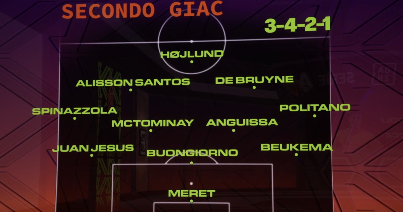 IL NAPOLI DI GIACCHERINI - Meret; Beukema, Buongiorno, Juan Jesus; Politano, Anguissa, McTominay, Spinazzola; De Bruyne, Alisson Santos; Hojlund.