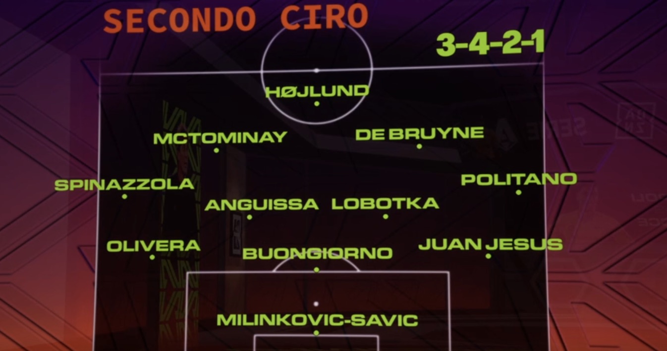 Questa la motivazione di Ferrara: "C'è da dire che noi prendiamo quelli che sono i giocatori che stanno rientrando tra poco. Più lunghi saranno gli infortuni di Rrahmani e Di Lorenzo, per questo abbiamo scelto giocatori che in condizioni normali non giocherebbero come Olivera. Sulla trequarti metto McTominay e De Bruyne perché oggi hanno dimostrato la capacità di lettura, ma c'è la variante Alisson che può entrare e spaccare la partita. Su Lobotka ero quasi certo che Conte parte da quell'uomo lì in mezzo al campo".