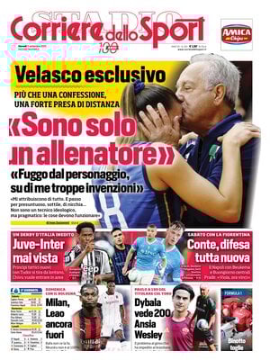 Spazio ovviamente anche ai campioni in carica, che vogliono dare continuità alle prime due vittorie contro Sassuolo e Cagliari. Il titolo scelto è il seguente: "Conte, difesa tutta nuova". Sabato con la Fiorentina, azzurri in campo con Beukema e Buongiorno centrali. Ha parlato in settimana il dirigente dei toscani Pradé: "Viola, ora vinci".