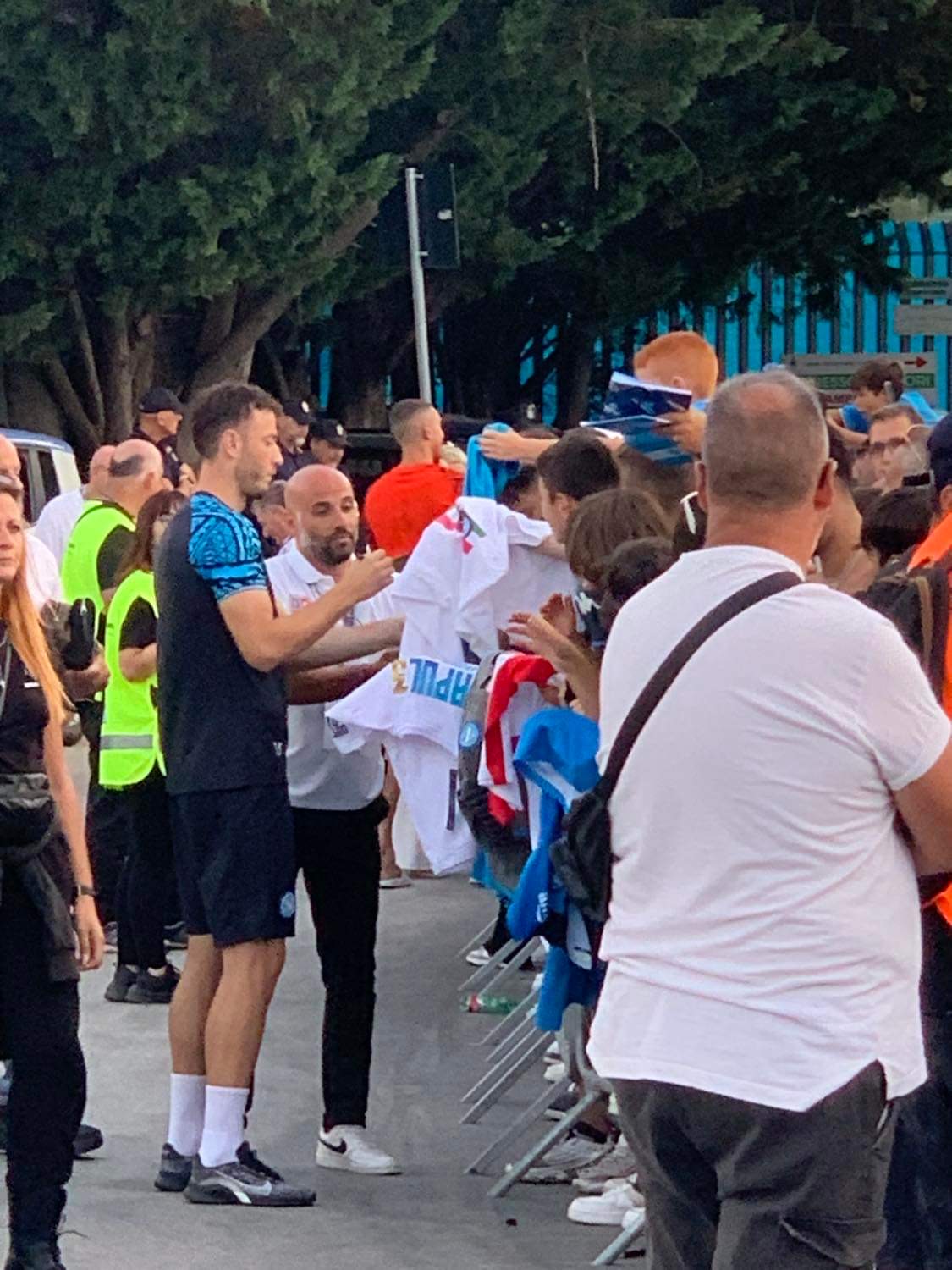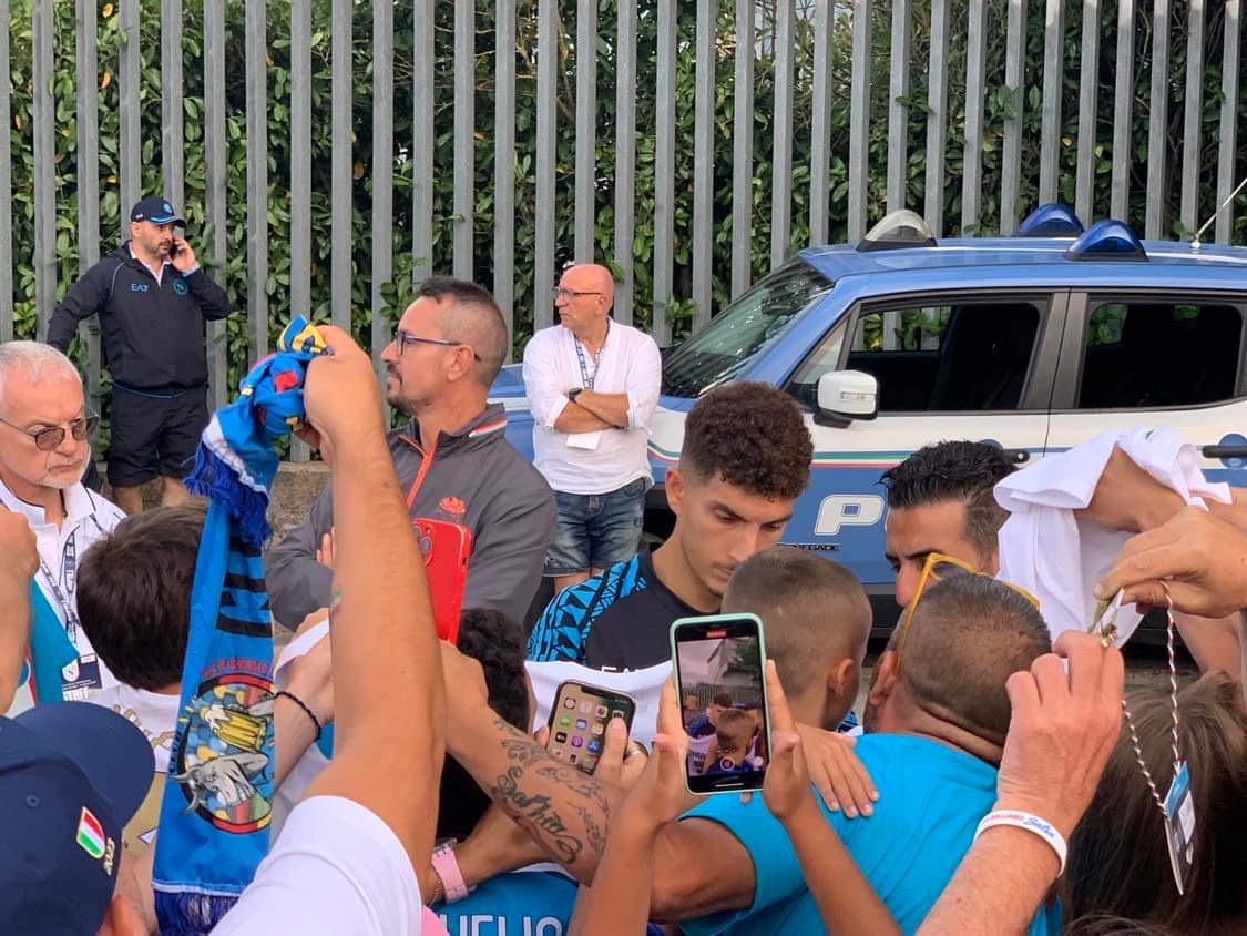 Sessione di autografi questa sera a Castel di Sangro per ben sette azzurri. Gollini, Di Lorenzo, Rrahmani, Olivera, Raspadori, Politano e Zerbin, loro i calciatori scelti dal Napoli per gli autografi ai tifosi. Entusiasmo alle stelle all’esterno dello stadio Patini. Ecco gli scatti dai nostri inviati.