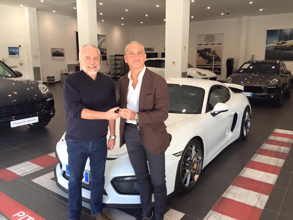 Ieri Aurelio De Laurentis ha voluto farsi un bel regalo. Il presidente del Napoli ha ritirato una Porsche Cayman GT4, come rivelato su Facebook da Giuseppe Del Priore del Centro Porsche