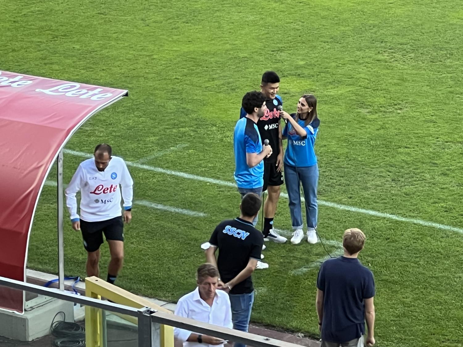 Il nuovo acquisto del Napoli Kim Min-Jae ha appena fatto il suo ingresso in campo allo stadio Patini di Castel di Sangro. Il sudcoreano assisterà alla partita contro l’Adana Demirspor da bordocampo. Entusiasmo tra i tifosi della tribuna non appena il difensore è entrato sul terreno di gioco per pochi minuti.