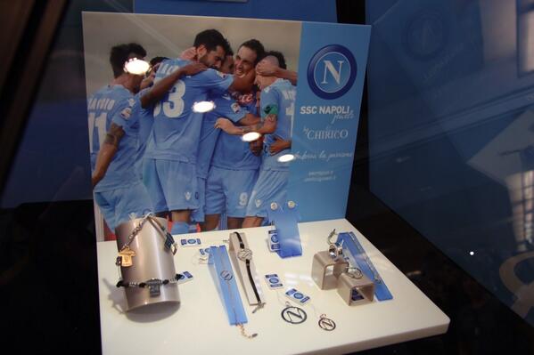 Grande entusiasmo oggi al Salone del Bijoux del Tarì, in occasione della presentazione ufficiale della linea di gioielli uomo-donna firmata "Chirico" e dedicata ai tifosi del Napoli.
