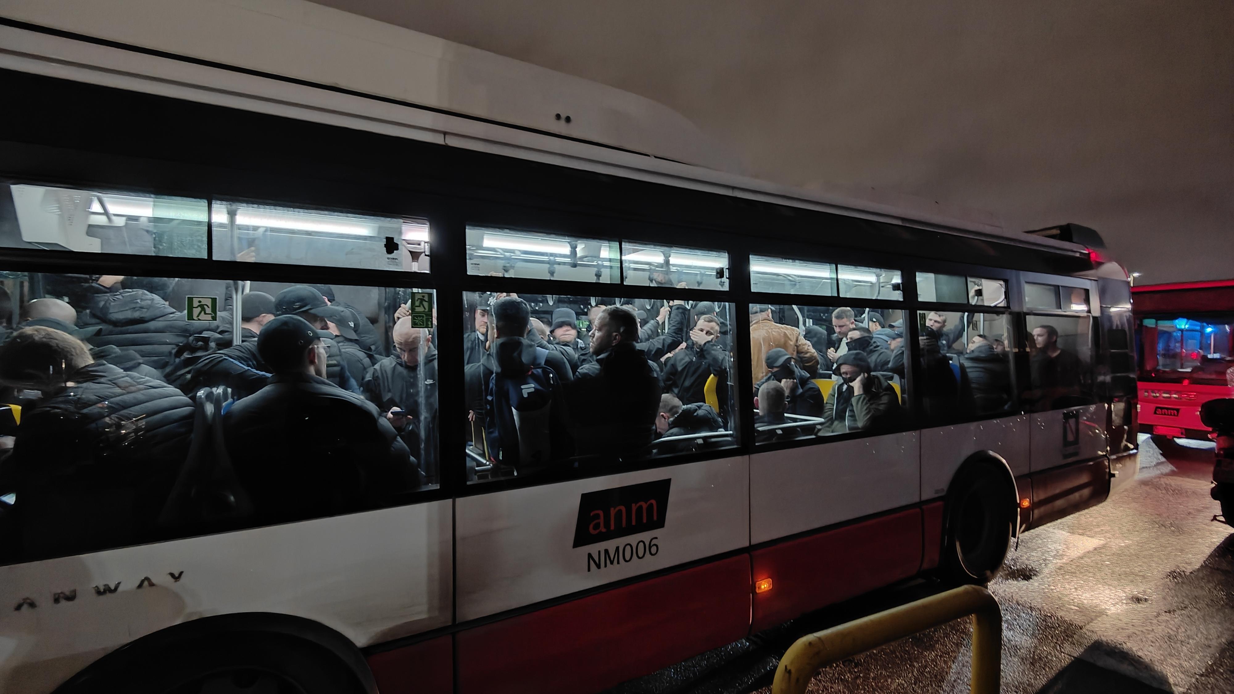 Nella notte, un autobus di linea che trasportava tifosi dell'Eintracht dalla Stazione Centrale di Napoli a un albergo sul lungomare è stato preso di mira all'altezza di via Marina da alcuni ultras partenopei.