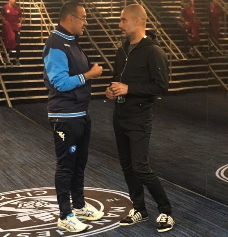 Si stimano, e se lo sono detti pubblicamente tante volte. E, finalmente, hanno potuto scambiare quattro chiacchiere senza tensione, quando il match è ormai finito: Pep Guardiola e Maurizio Sarri sono stati immortalati nel loro 'terzo tempo' dalla SSC Napoli, che ha mostrato un'immagine dell'atteso incontro su Twitter.