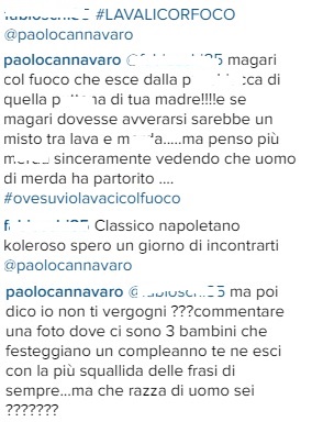 Disavventura social per l'ex capitano azzurro Paolo Cannavaro: il difensore ha pubblicato su Instagram la foto della festa di compleanno di uno dei suoi figli, e tra i commenti ne è spuntato uno becero che ha scatenato la giustificata ira del difensore.
