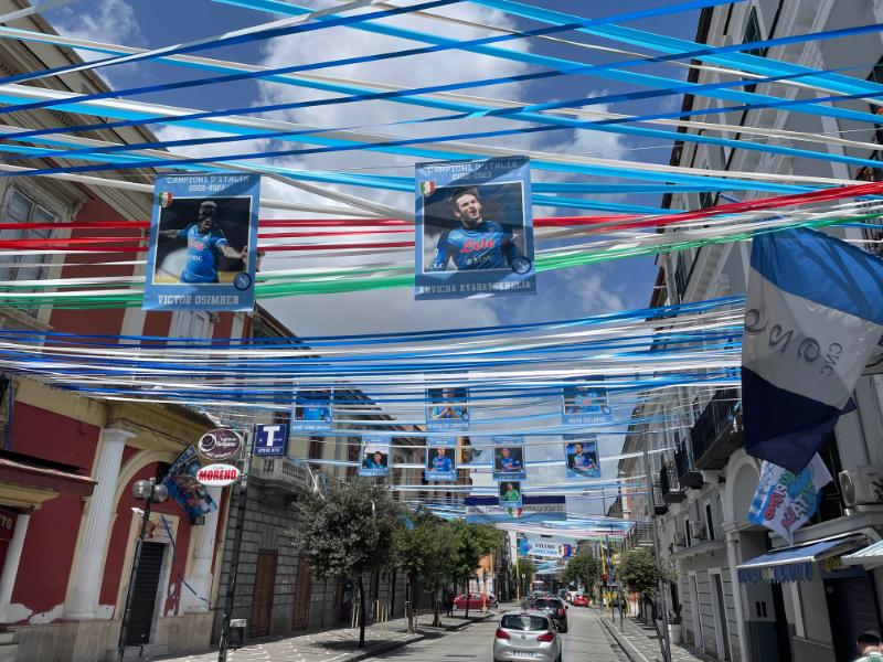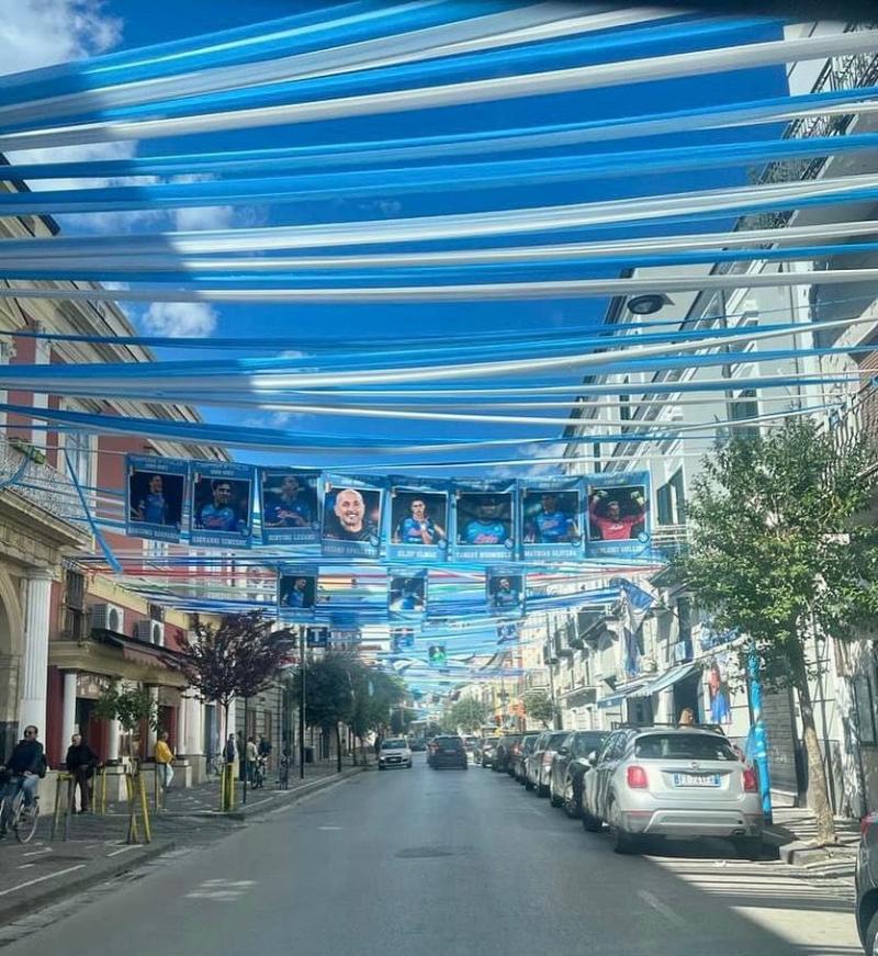 Prosegue come ormai da settimane la nostra panoramica di tutte le zone della nostra città (e non solo) totalmente colorate d'azzurro. Gli scatti di seguito ci arrivano da Caivano, comune a Nord di Napoli, che già da tempo è totalmente colorato d'azzurro e sul corso figurano i volti di ogni singolo protagonista del tricolore.
