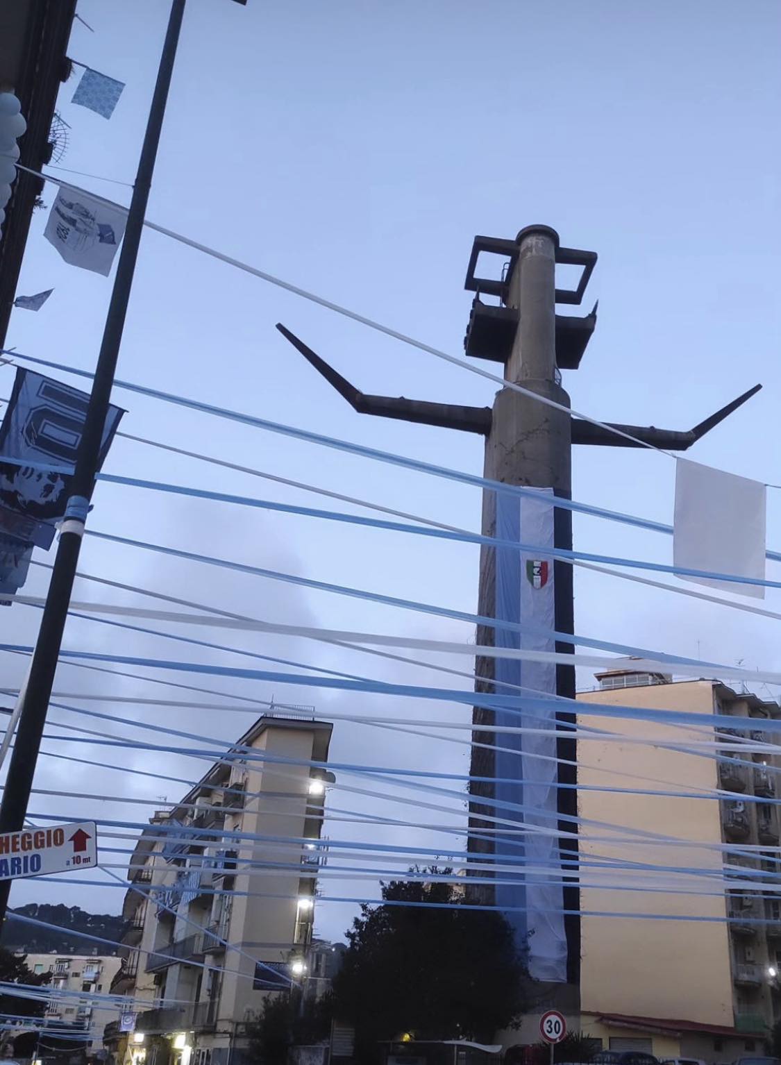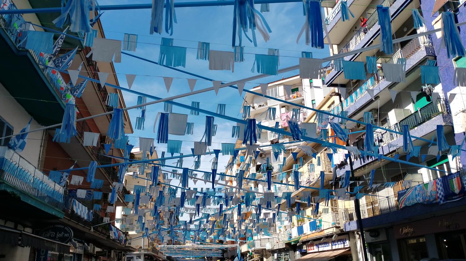 Prosegue come ormai da settimane la nostra panoramica di tutte le zone della città partenopea (e non solo) totalmente colorate d'azzurro. Quest'oggi vi proponiamo il Rione Cavalleggeri d'Aosta, nel quartiere Fuorigrotta, con uno scatto spettacolare realizzato da un nostro lettore.