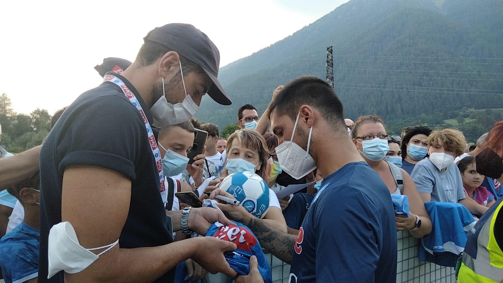 Penultimo giorno di ritiro per il Napoli che domani lascerà il Trentino e Dimaro. Al termine della seduta di allenamento pomeridiano, Matteo Politano si è intrattenuto a firmare gli autografi e scattare selfie con i tifosi. Bagno di folla per l’attaccante che si è ben distinto in questi giorni di raduno. Di seguito le foto.