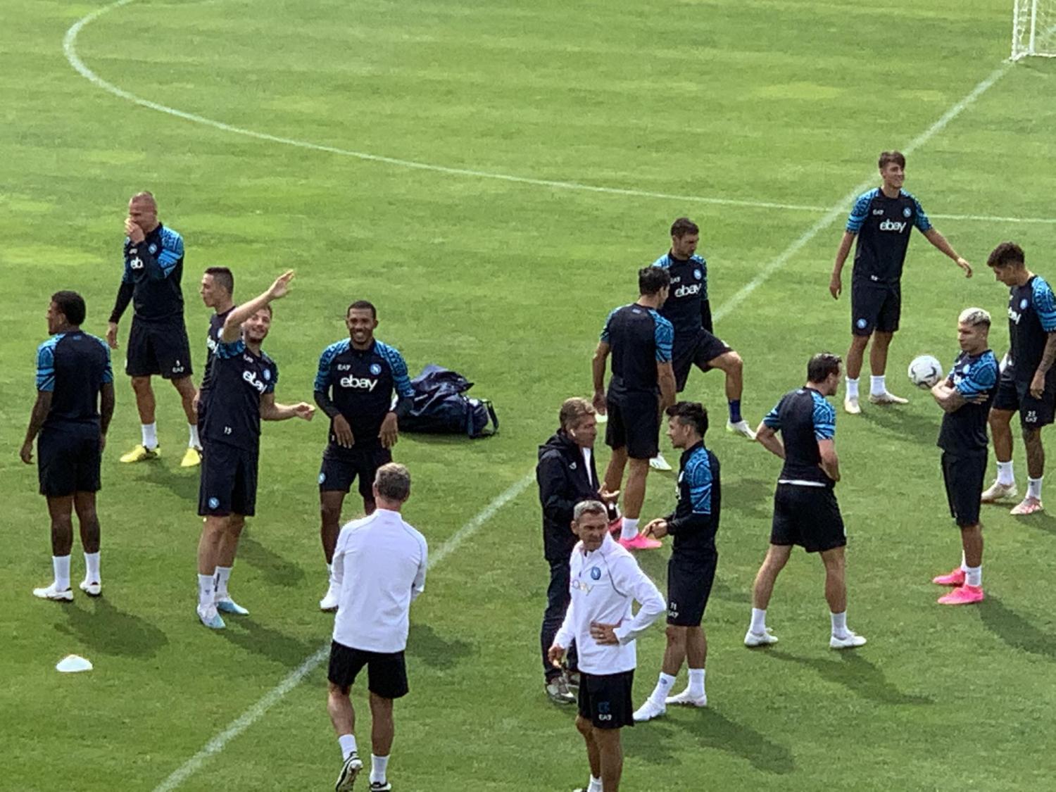 Mentre Khvicha Kvaratskhelia e Victor Osimhen continuano ad allenarsi a parte, limitandosi a un lavoro in palestra, altri quattro azzurri rientrano in gruppo. Si tratta di Lobotka, Juan Jesus, Demme e Mathias Olivera. Di seguito lo scatto dai nostri inviati.