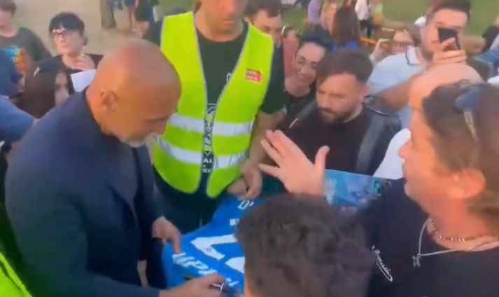 Certaldo celebra tre suoi allenatori che hanno tutti trionfato nello stesso anno. Grande festa nel paese fiorentino per celebrare Luciano Spalletti, campione d'Italia con il Napoli, Paolo Indiani, che ha portato l’Arezzo dalla D alla Serie C, e Alberto Ramerini, che ha condotto proprio il Certaldo in Serie D partendo agli ultimi posti della Prima Categoria in soli cinque anni. Tanti certaldesi hanno affollato l’area della festa, presenti anche tanti tifosi del Napoli che hanno chiesto gli autografi a Spalletti, che non si è sottratto al travolgente affetto. Di seguito lo scatto del tecnico mentre autografa una maglia del Napoli.
