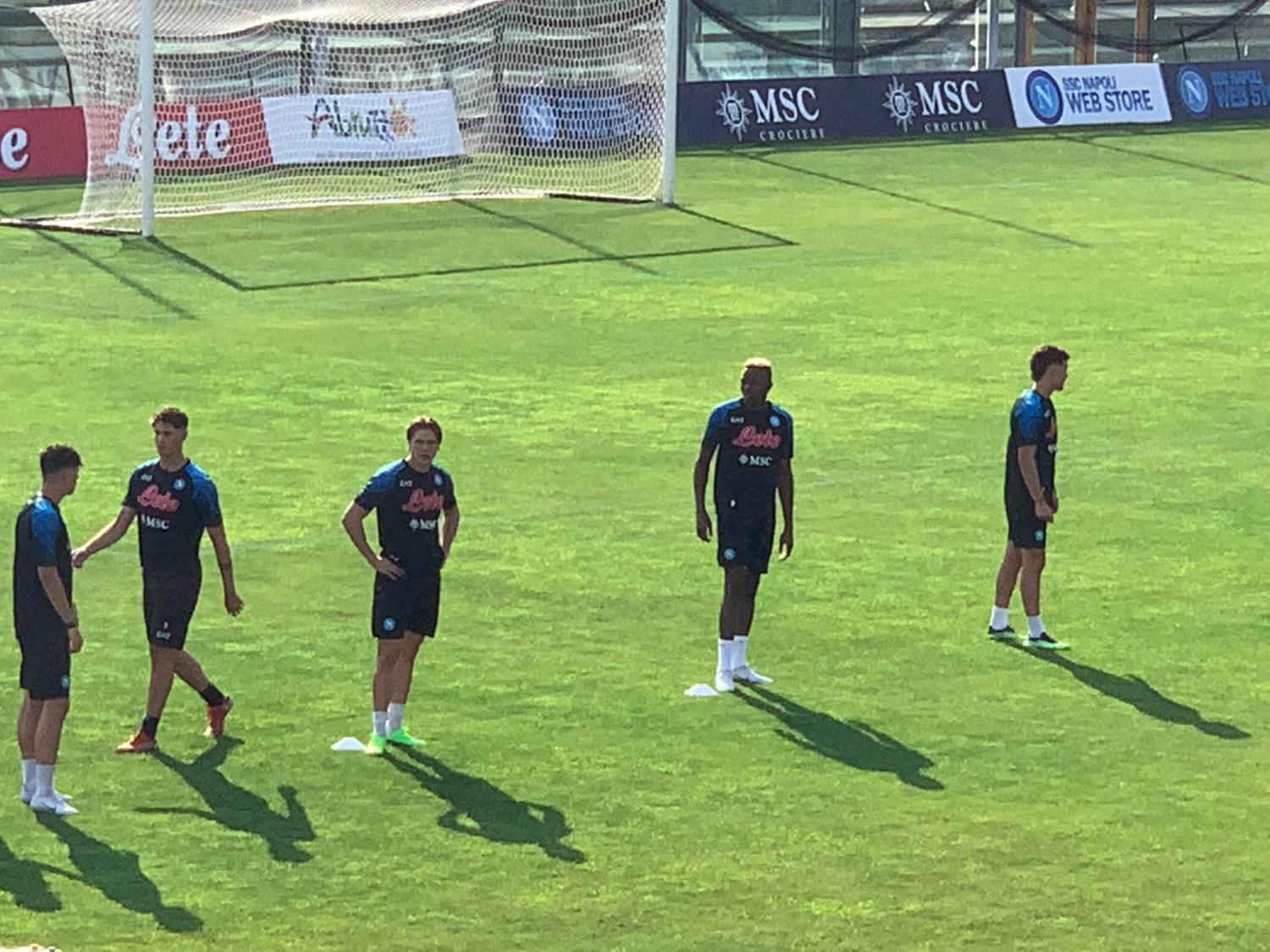 Prima novità nel primo allenamento del Napoli a Castel di Sangro. Gli azzurri sono entrati in campo per cominciare la sessione agli ordini di Spalletti con le nuove maglie da allenamento. In attesa quindi delle nuove divise di gioco che saranno presentate il 27 luglio in occasione delle prima amichevole contro l’Adana Demirsport, ecco il nuovo materiale tecnico.