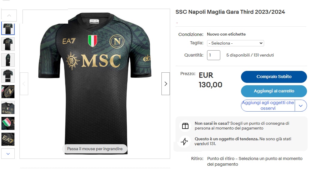 FOTO - Terza maglia ufficiale, ora in vendita su eBay: prezzo e dettagli