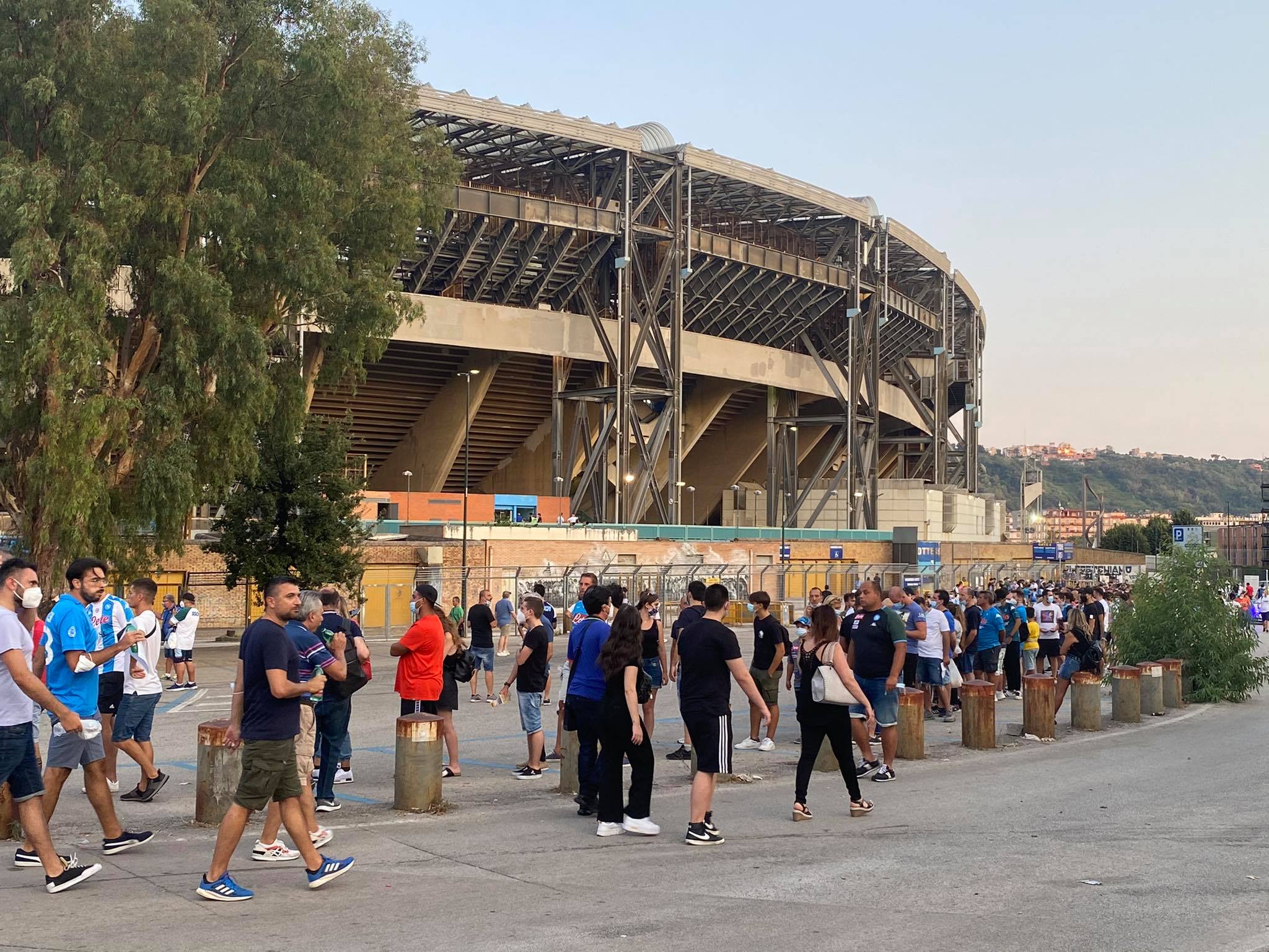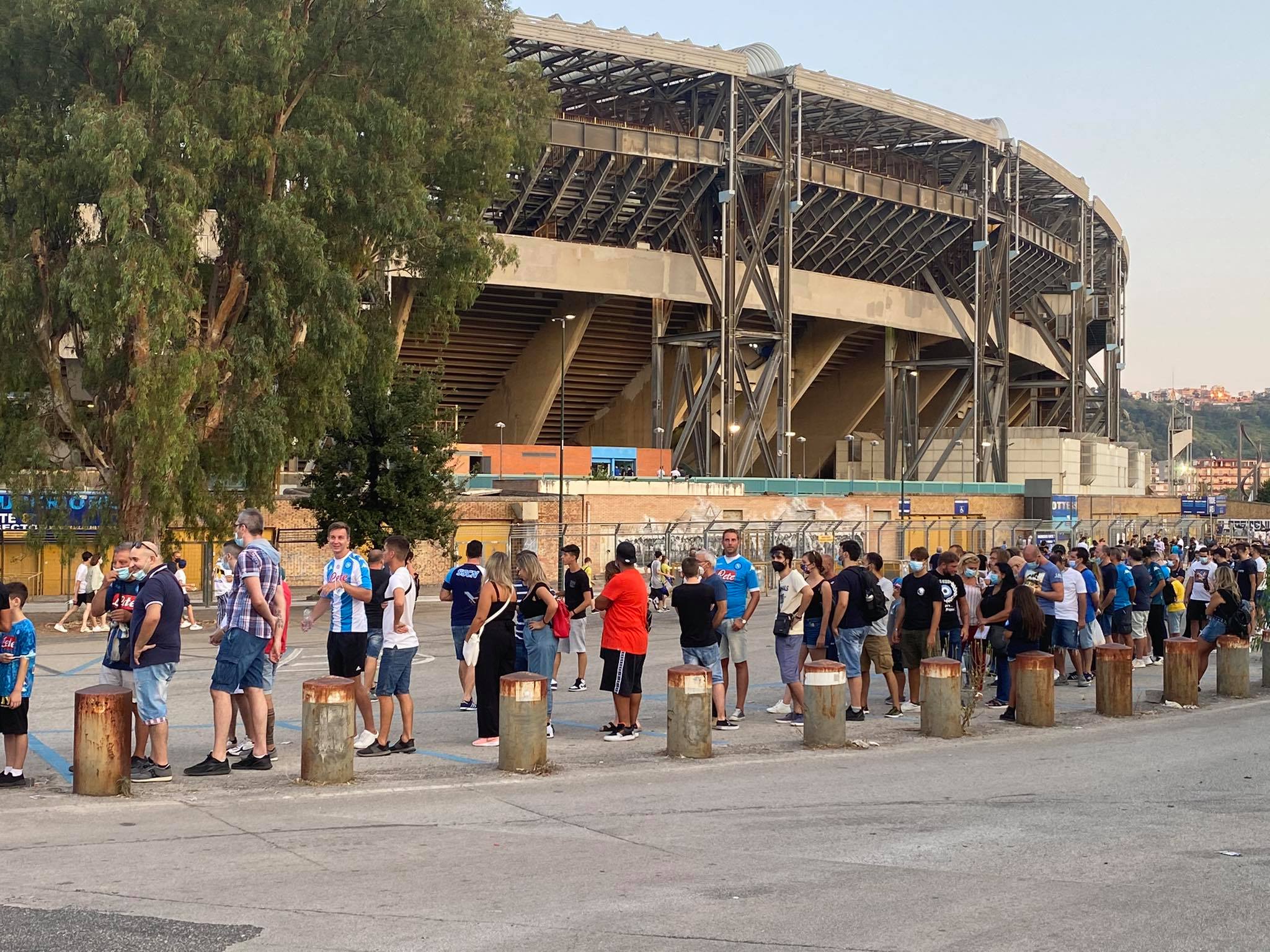 Lunghe file ai varchi dello stadio Diego Armando Maradona per il match delle 20.45 tra Napoli e Venezia. Per l'esordio in campionato degli azzurri sono previsti oltre 20mila spettatori, che sono in attesa dei controlli accurati a green pass e biglietti prima di entrare nell'impianto di Fuorigrotta.