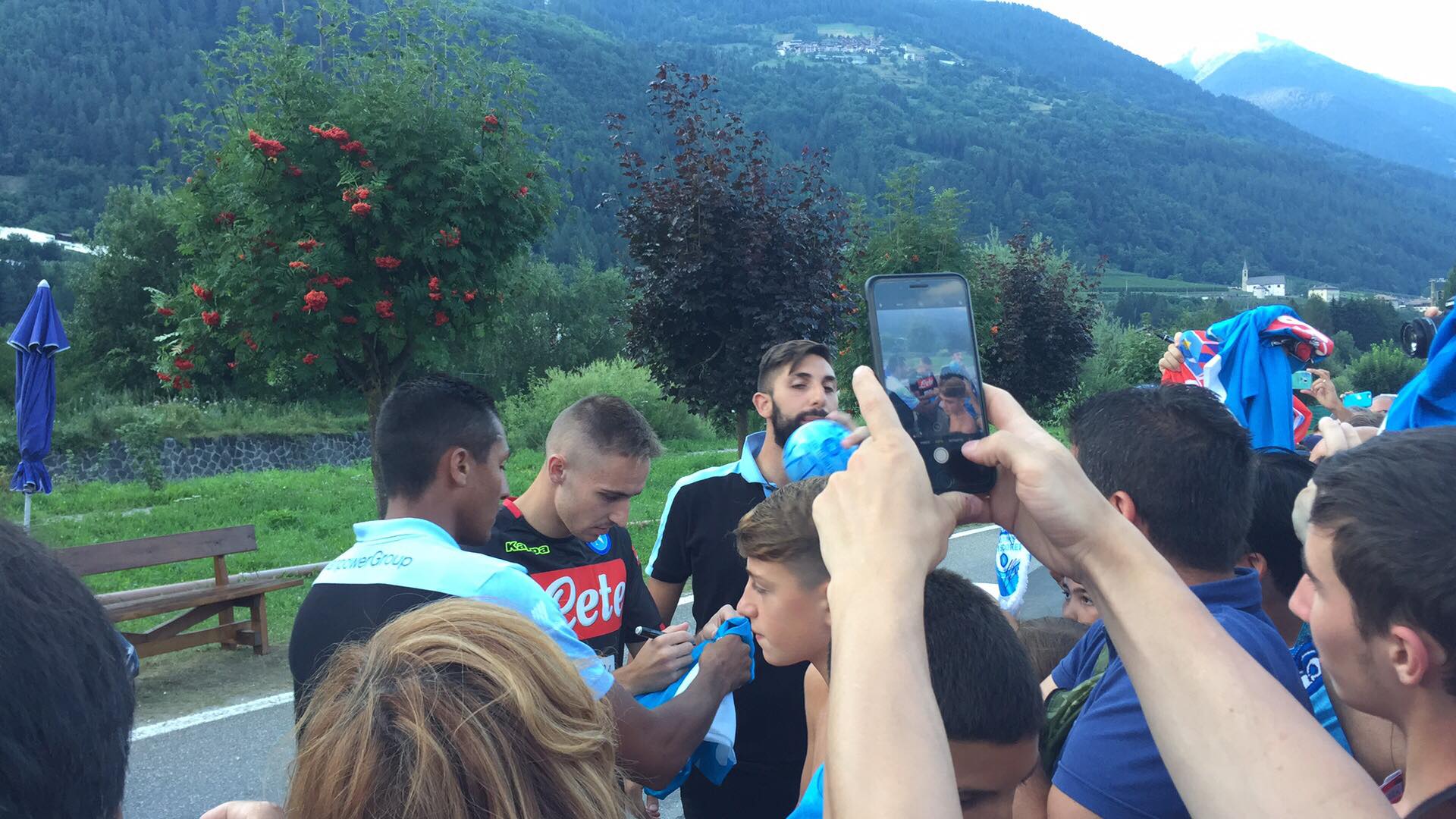Solita sessione d'autografi da parte dei calciatori azzurri per i tifosi presenti a Dimaro: oggi è toccato a Marko Rog e Lorenzo Tonelli concedere foto e qualche firma ai sostenitori partenopei.