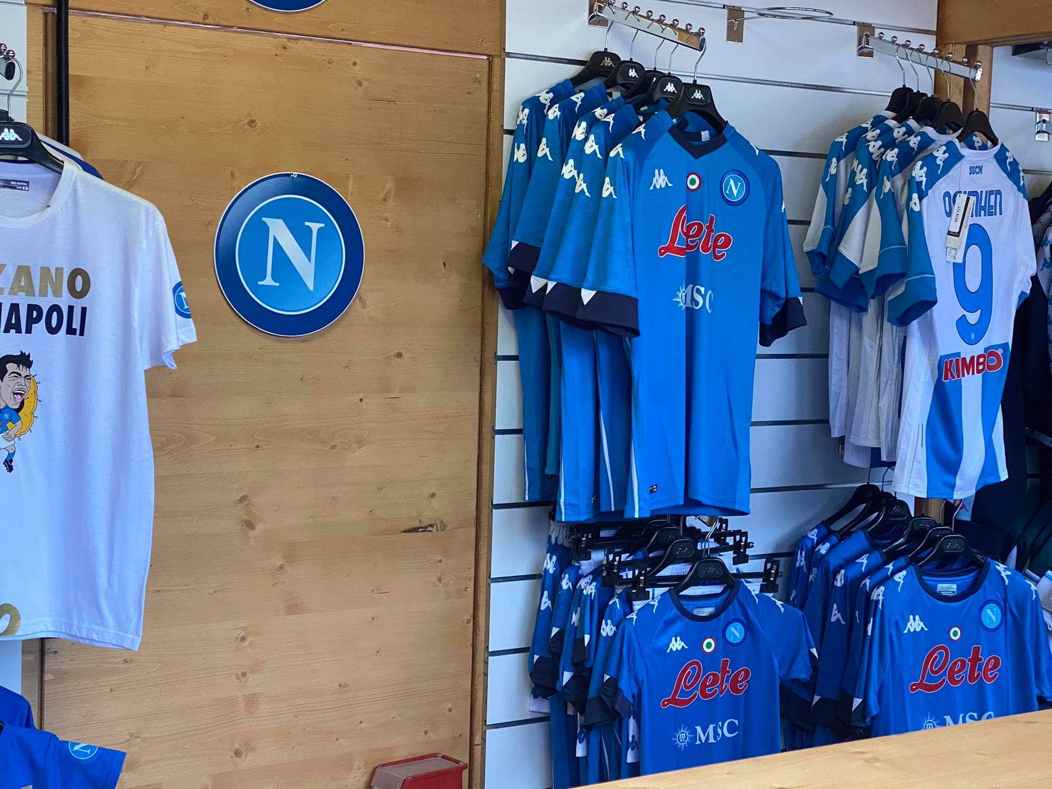 E’ iniziato quest’oggi il nuovo ritiro del Napoli in quel di Dimaro. In attesa della presentazione delle nuove divise ufficiali che indosseranno i calciatori azzurri, nello store ufficiale del club partenopeo, ci sono in vendita le maglie Kappa della scorsa stagione. Di seguito le foto dei nostri inviati a Dimaro.