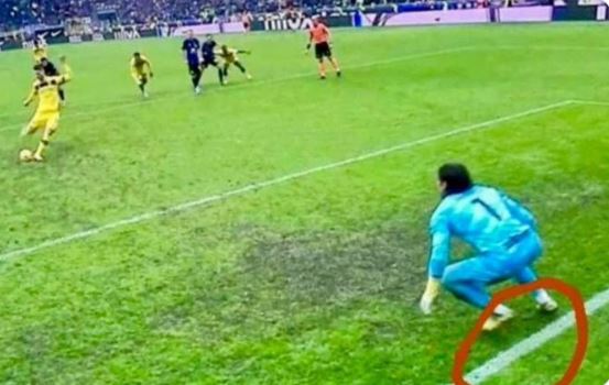 Proseguono le proteste in casa Verona per il 2-1 rimediato a San Siro con l'Inter, in una partita però condizionata da arbitro e VAR. L'Hellas reclama per una rete irregolare convalidata a Frattesi, ma non solo. Come si vede dall'immagine seguente, anche il rigore sbagliato nel finale da Henry andava ripetuto in quanto Sommer, portiere nerazzurro, toglie entrambi i piedi dalla linea prima della battuta del penalty.