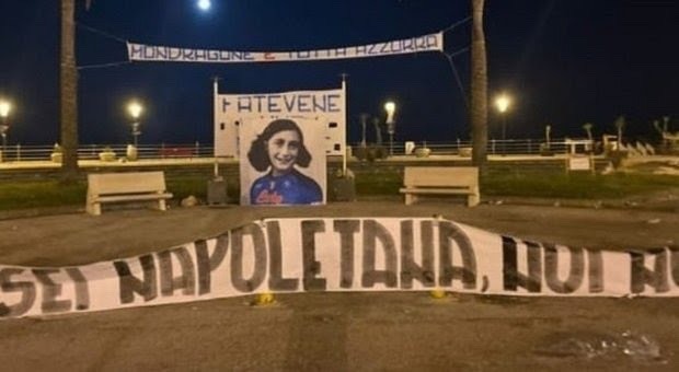 L'odio sportivo dopo il trionfo del Napoli sta portando ad una serie di episodi incredibilmente vergognosi. Prima le aggressioni a semplici ragazzi con bandierine tra Roma, Varese e non solo ed oggi uno striscione nauseante a Mondragone, provincia di Caserta, con Anna Frank, la ragazzina tedesca ebrea divenuta simbolo della Shoah per il suo diario, raffigurata in maglia azzurra per offendere i napoletani e con uno striscione per rimarcarlo: "Sei napoletana, noi no". Sui social l'immagine è purtroppo diventata subito virale, seppur chiaramente per sottolinearne l'enorme disgusto. L'immagine ovviamente non rappresenta certo Mondragone - di cui tra l'altro abbiamo postato in questi giorni bellissimi scatti per i preparativi per la festa Scudetto - ma soltanto l'abissale ignoranza di pochissimi individui spregevoli.