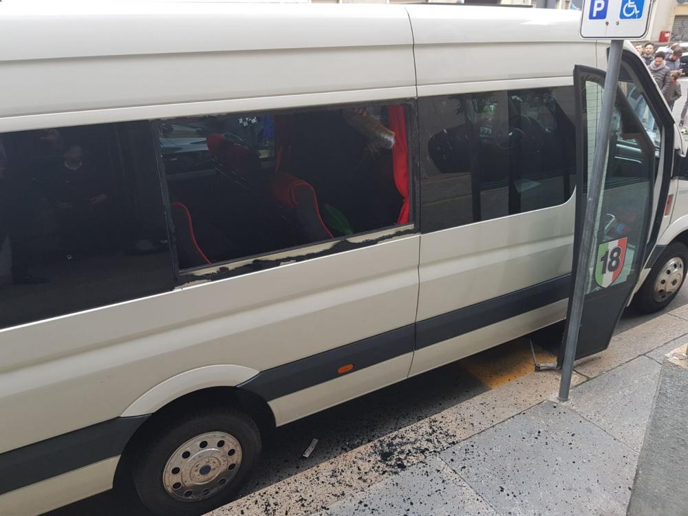 Di seguito le foto scattate da MilanNews.it del pullmino colpito dello staff rossonero, colpito da una spranga mentre stava uscendo dallo Juventus Stadium. Dopo l'aggressione il mezzo è tornato all'hotel che ospita il Milan.